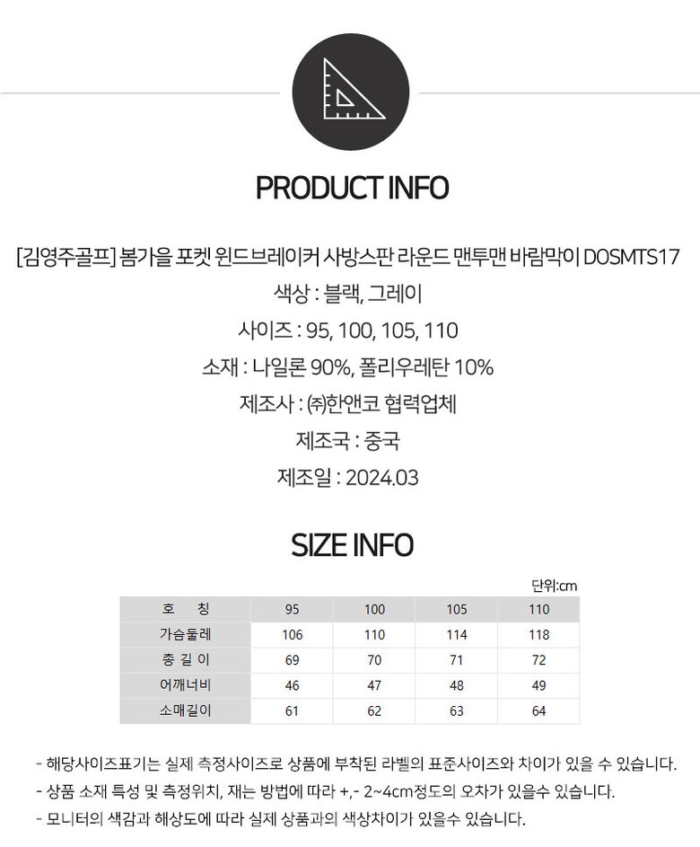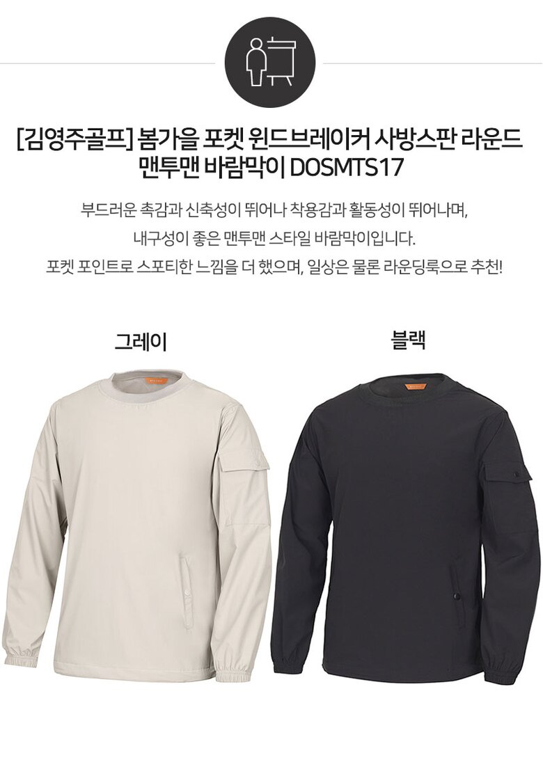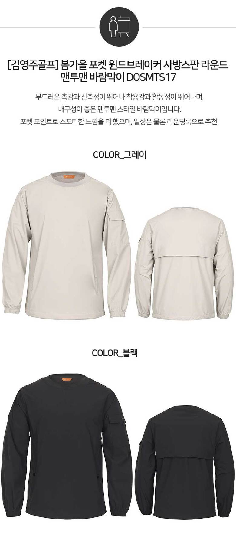[김영주골프] 봄가을 포켓 윈드브레이커 사방스판 라운드 맨투맨 바람막이 DOSMTS17