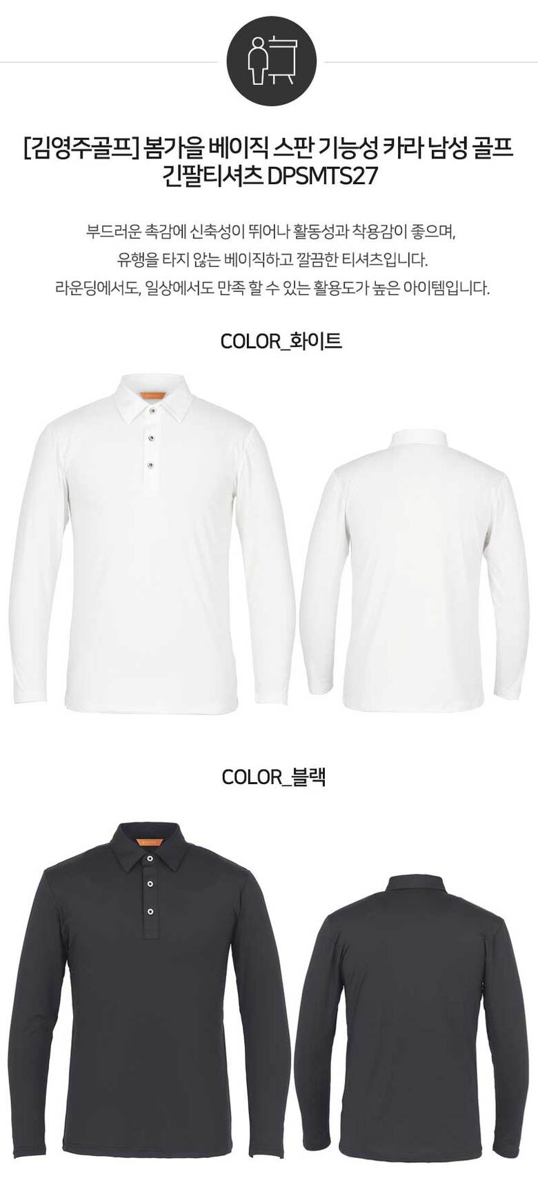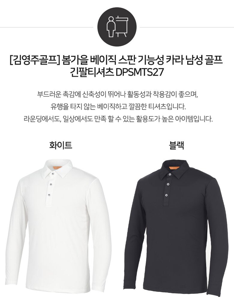 [김영주골프] 봄가을 베이직 스판 기능성 카라 남성 골프 긴팔티셔츠 DPSMTS27