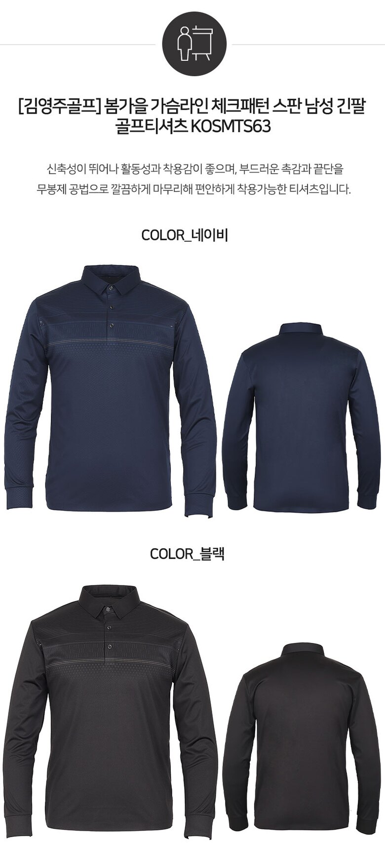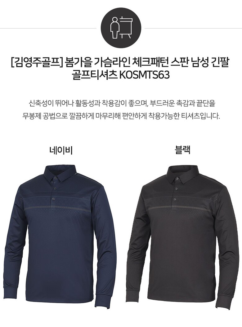 [김영주골프] 봄가을 가슴라인 체크패턴 스판 남성 긴팔 골프티셔츠 KOSMTS63