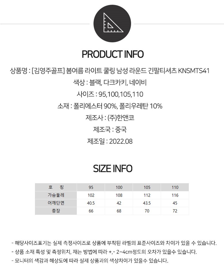 [김영주골프] 봄여름 라이트쿨링 남성 라운드 긴팔티셔츠 KNSMTS41