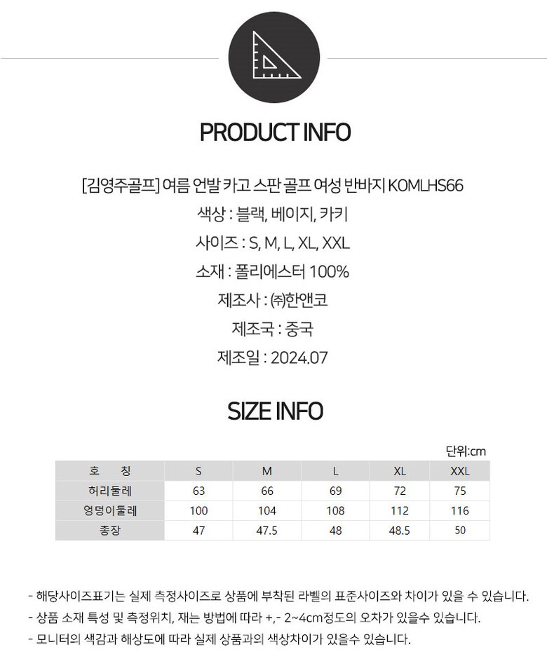 [김영주골프] 여름 언발 카고 스판 골프 여성 반바지 KOMLHS66