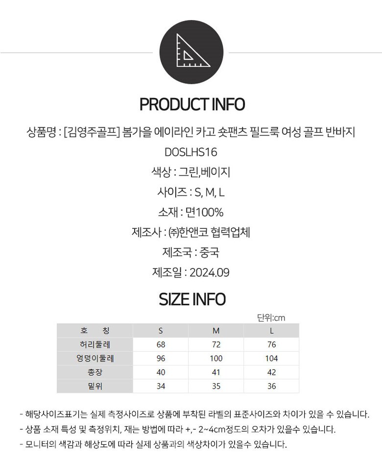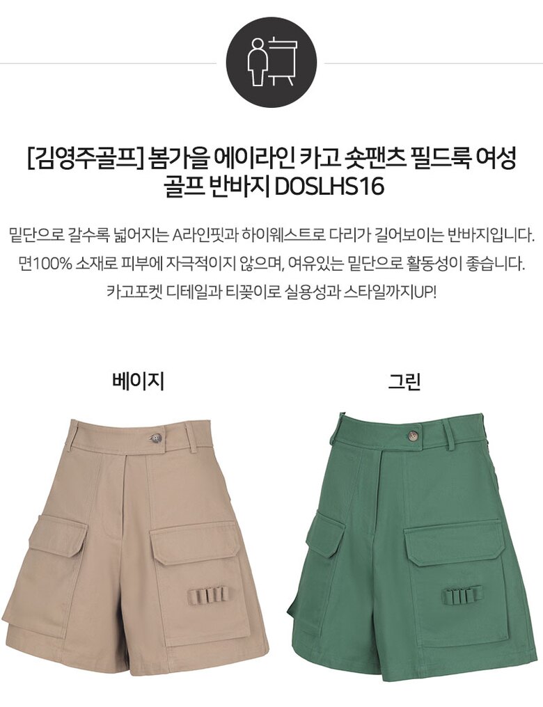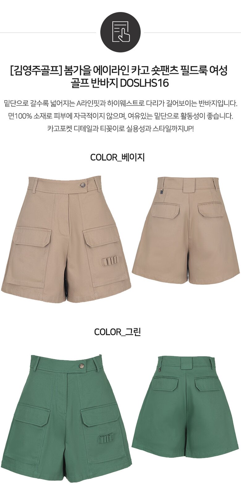 [김영주골프] 봄가을 에이라인 카고 숏팬츠 필드룩 여성 골프 반바지 DOSLHS16