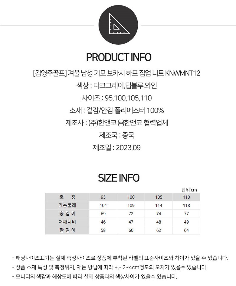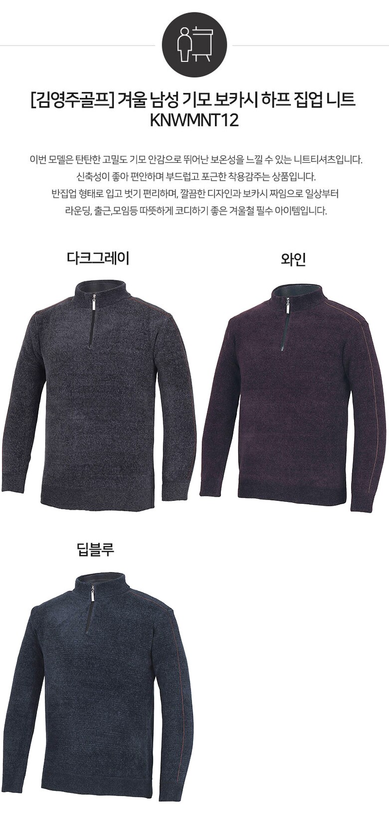 [김영주골프] 겨울 남성 기모 보카시 하프 집업 니트 KNWMNT12