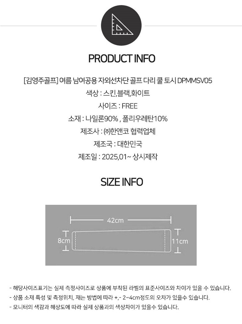 [김영주골프] 여름 남여공용 자외선차단 다리토시 냉감 쿨 골프 스포츠 DPMMSV05