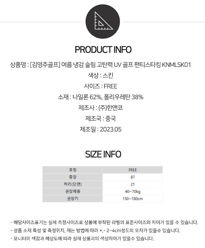 [김영주골프] 여름 냉감 슬림 고탄력 UV 골프 팬티스타킹 KNMLSK01