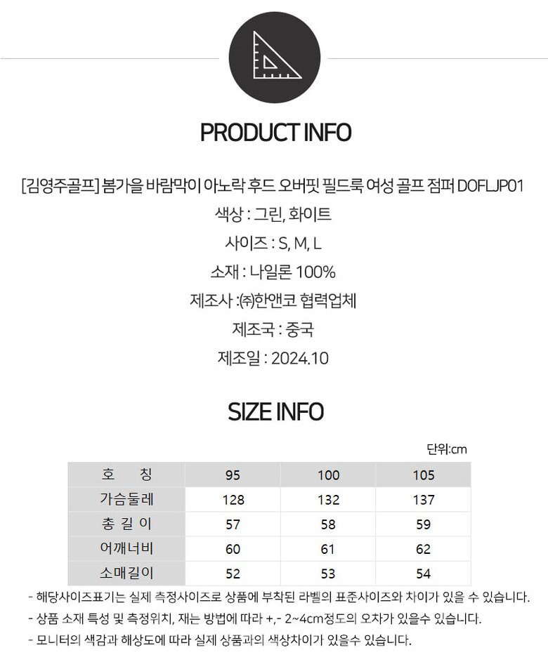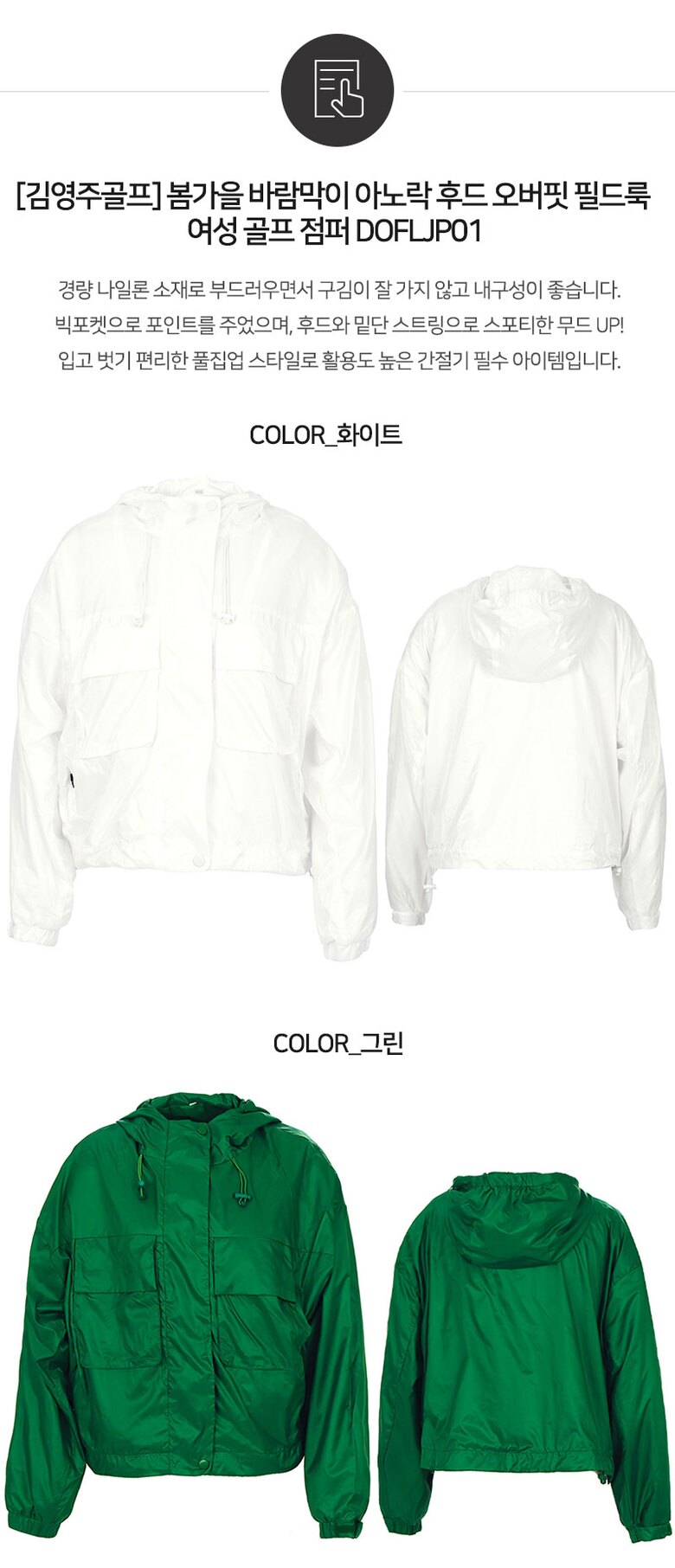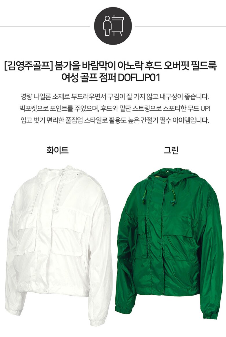 [김영주골프] 봄가을 바람막이 아노락 후드 오버핏 필드룩 여성 골프 점퍼 DOFLJP01