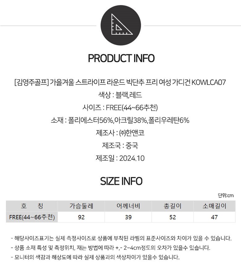 • 아울렛 상품의 특성 상 “택이 훼손”된 경우가 있으나 이는 불량이 아니며 무료 반품 대상 상품이 아닙니다.