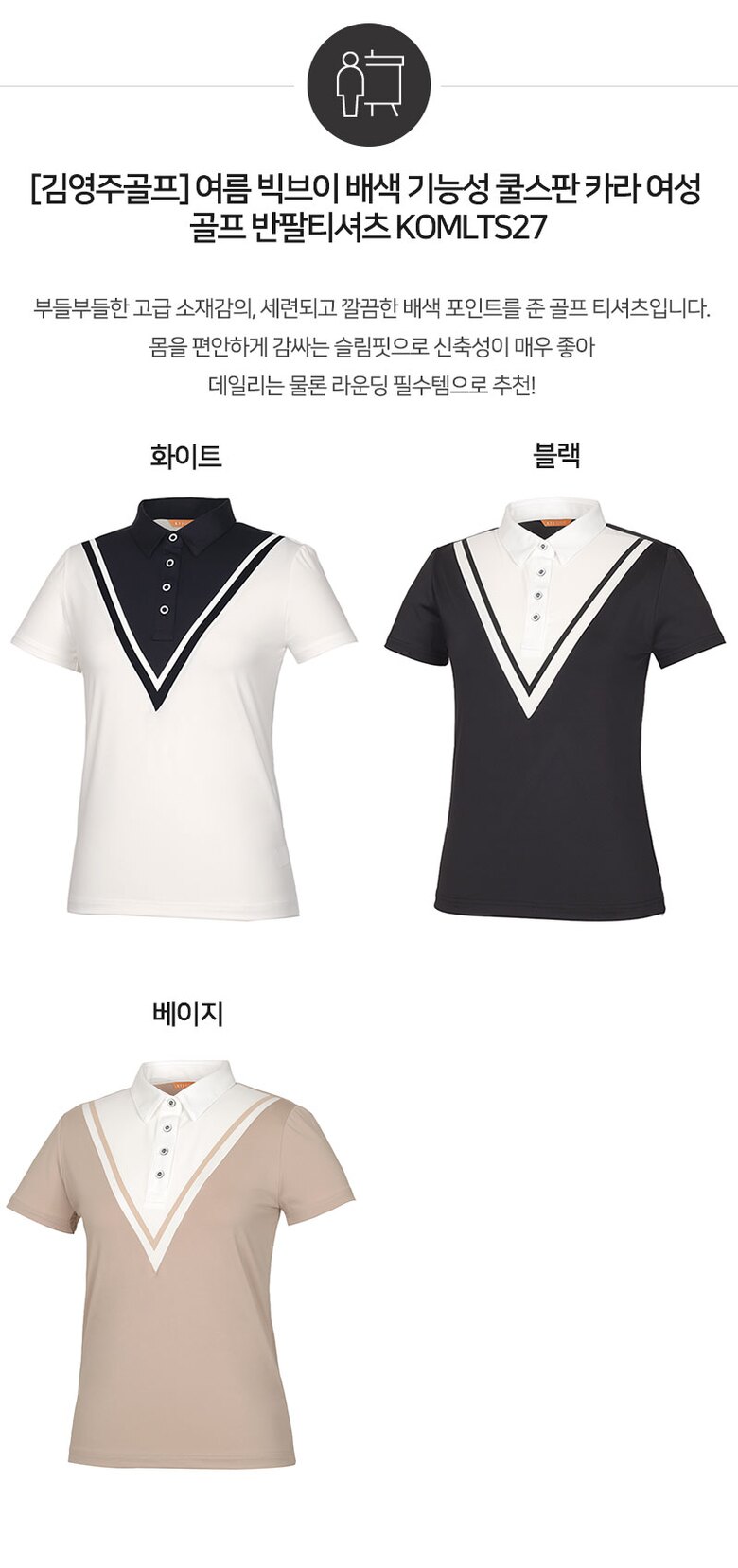 [김영주골프] 여름 빅브이 배색 기능성 쿨스판 카라 여성 골프 반팔티셔츠 KOMLTS27
