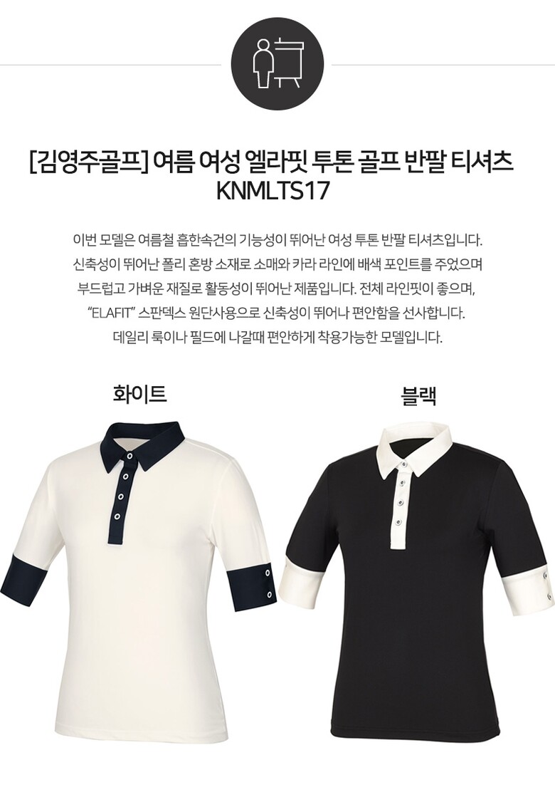 [김영주골프] 여름 엘라핏 투톤 골프 반팔 티셔츠 KNMLTS17