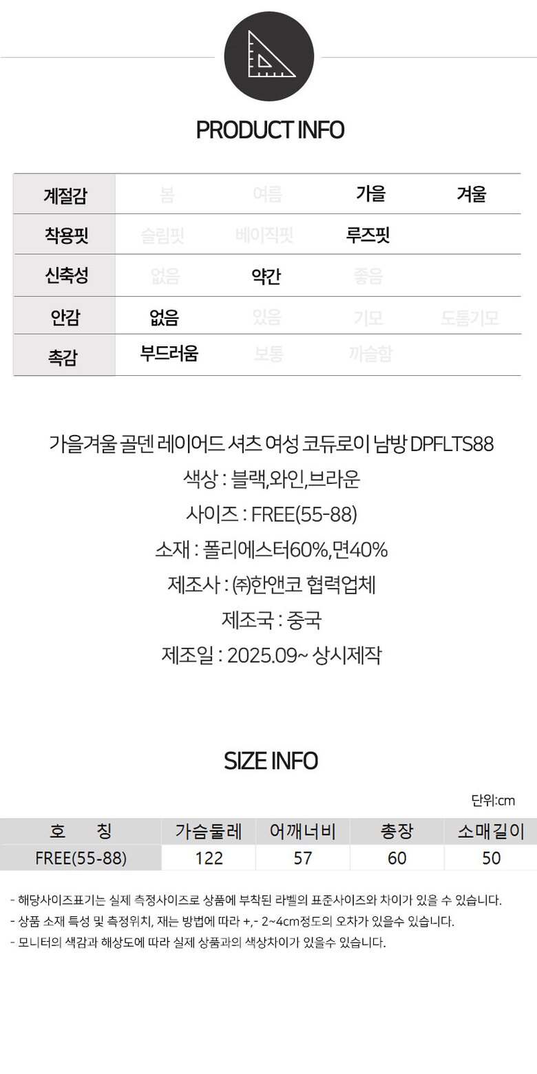 [김영주골프] 가을겨울 골덴 레이어드 셔츠 여성 코듀로이 남방 DPFLTS88