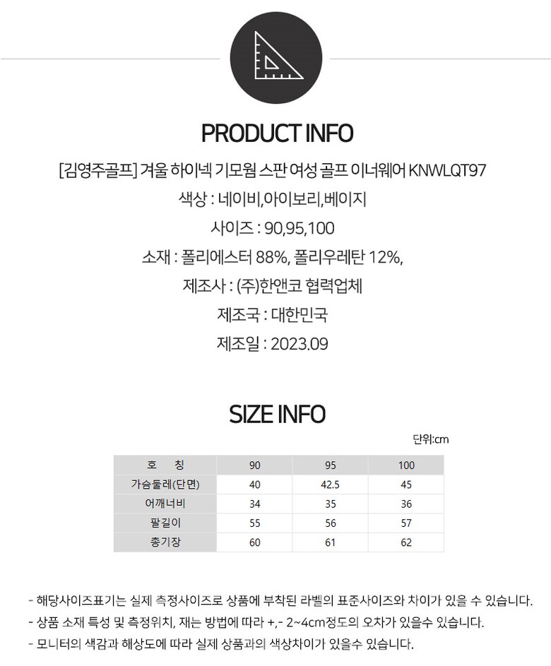 [김영주골프] 겨울 하이넥 기모웜 스판 여성 골프 이너웨어 KNWLQT97