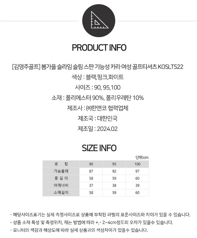 [김영주골프] 봄가을 슬라임 슬림스판 기능성 카라 여성 골프티셔츠 KOSLTS22