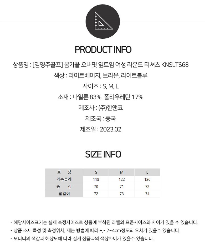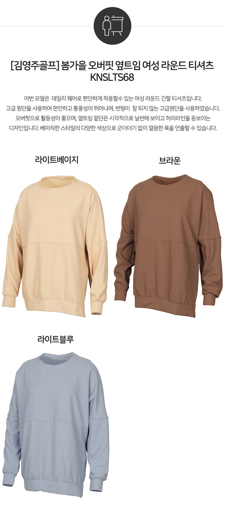 [김영주골프] 봄가을 오버핏 트임 여성 라운드 티셔츠 KNSLTS68