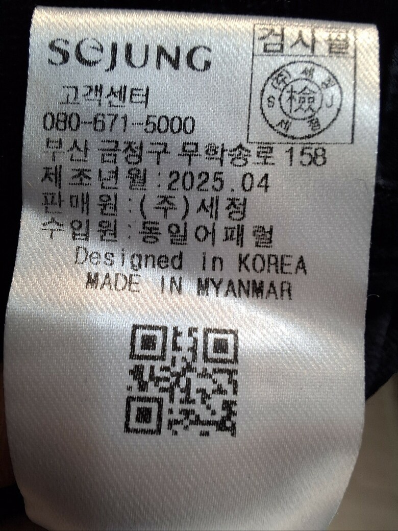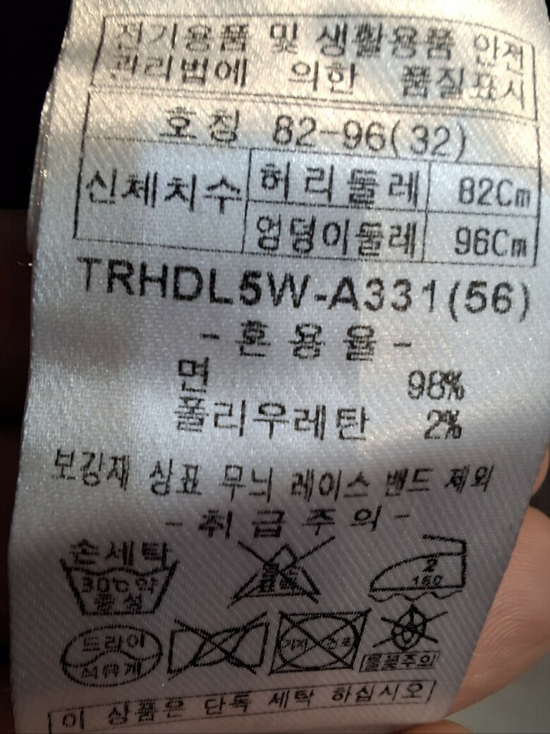| 1. 제품 소재 (섬유의 조성 또는 혼용률을 백분율로 표시, 기능성인 경우 성적서 또는 허가서) | 면 98%, 폴리우레탄 2% |