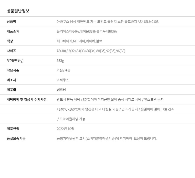 | 9. 상품별 세부 사양 | 상세설명참조 |