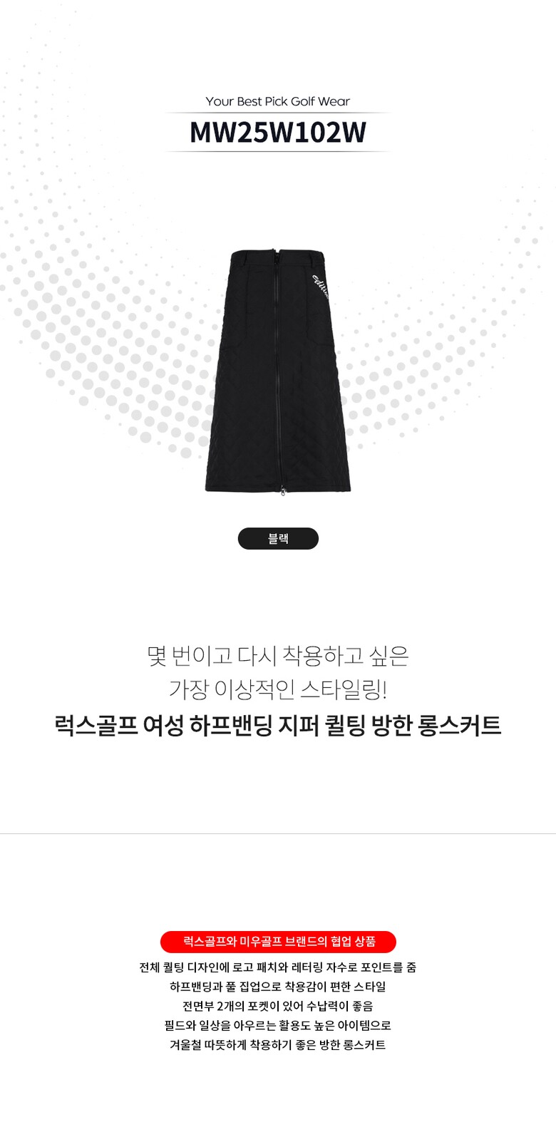 보스케 여성 겨울 골프 반밴딩 방한 지퍼 퀼팅 롱 스커트 LB251241