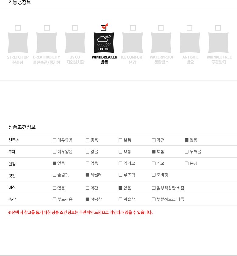 | 9. 상품별 세부 사양 | 상세설명참조 |