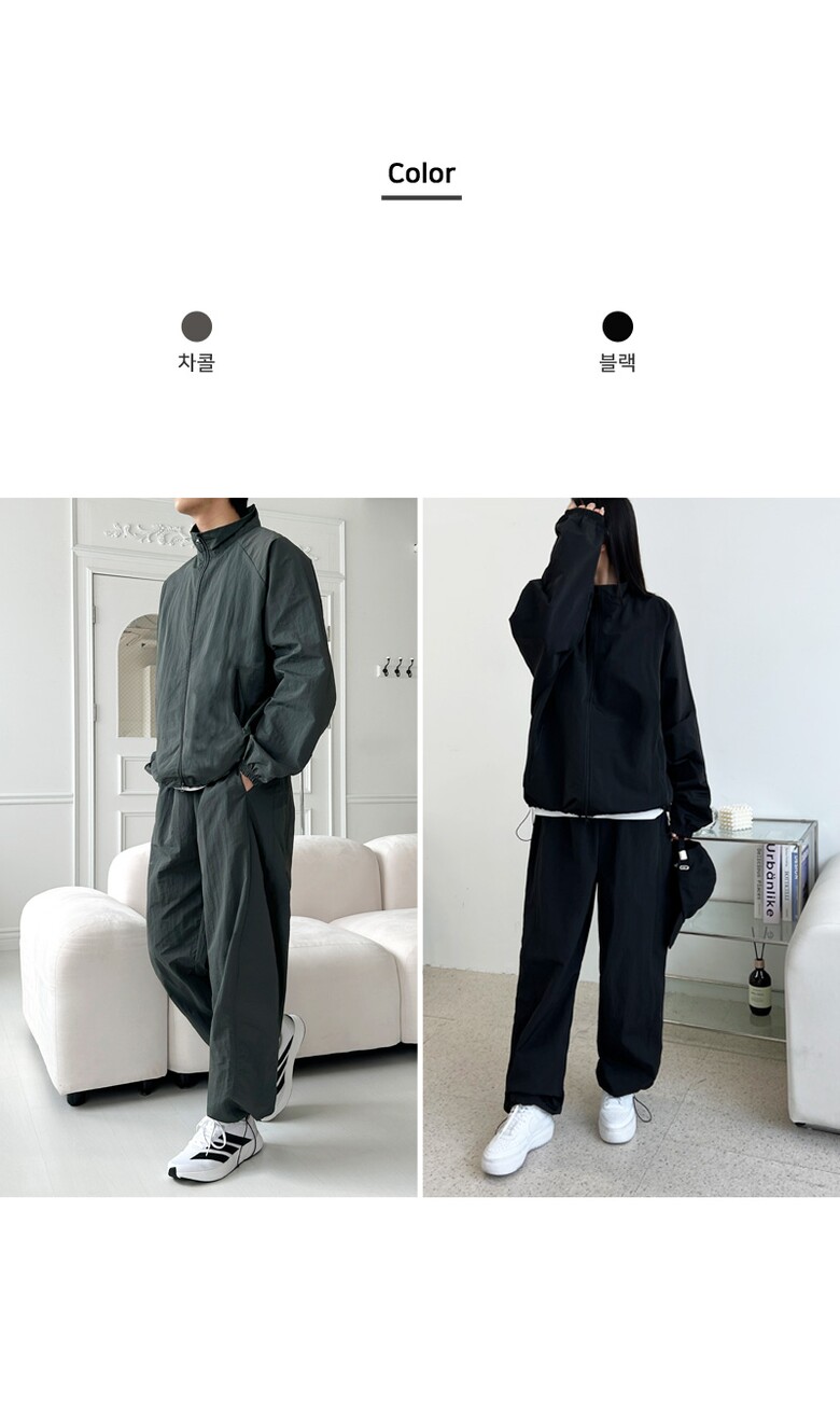 여자 오버핏 하프넥 집업 바람막이 나일론 와이드 바지 세트