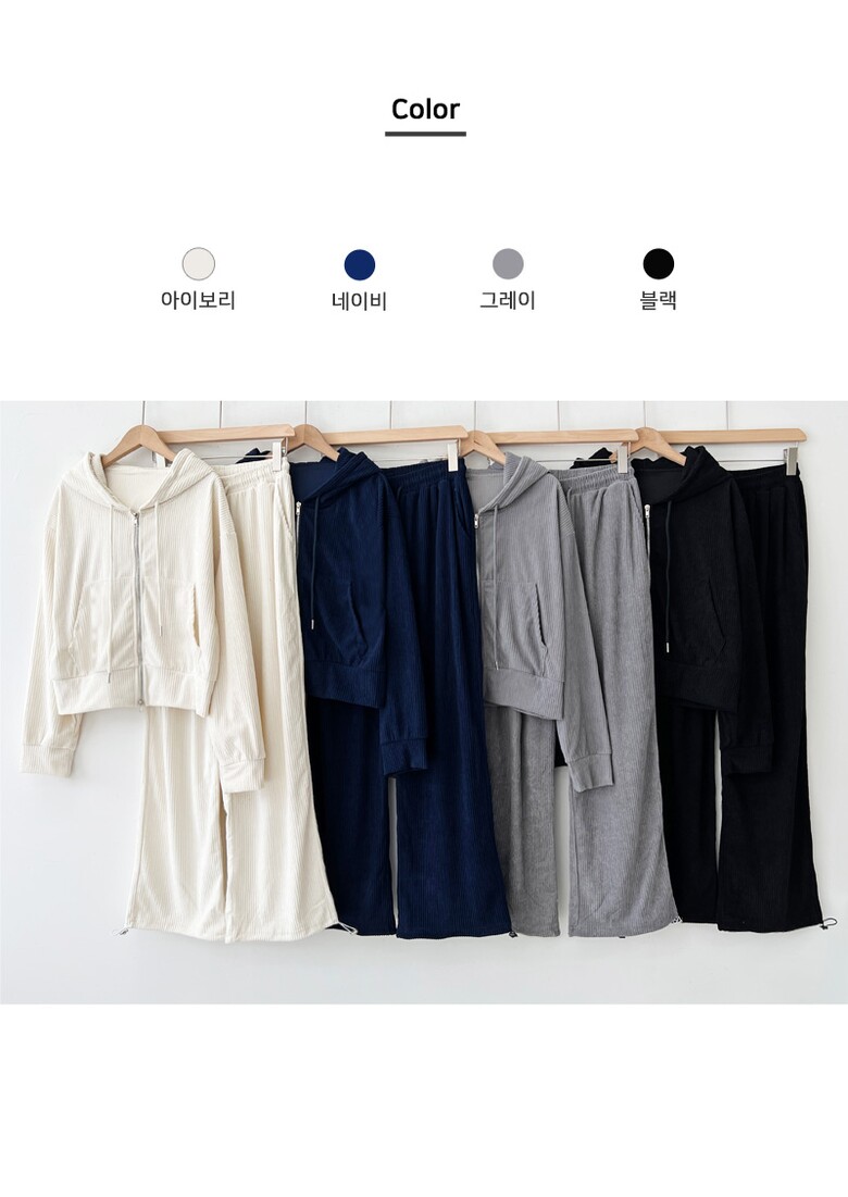여자 코듀로이 골덴 후드 집업 와이드 조거 트레이닝 세트