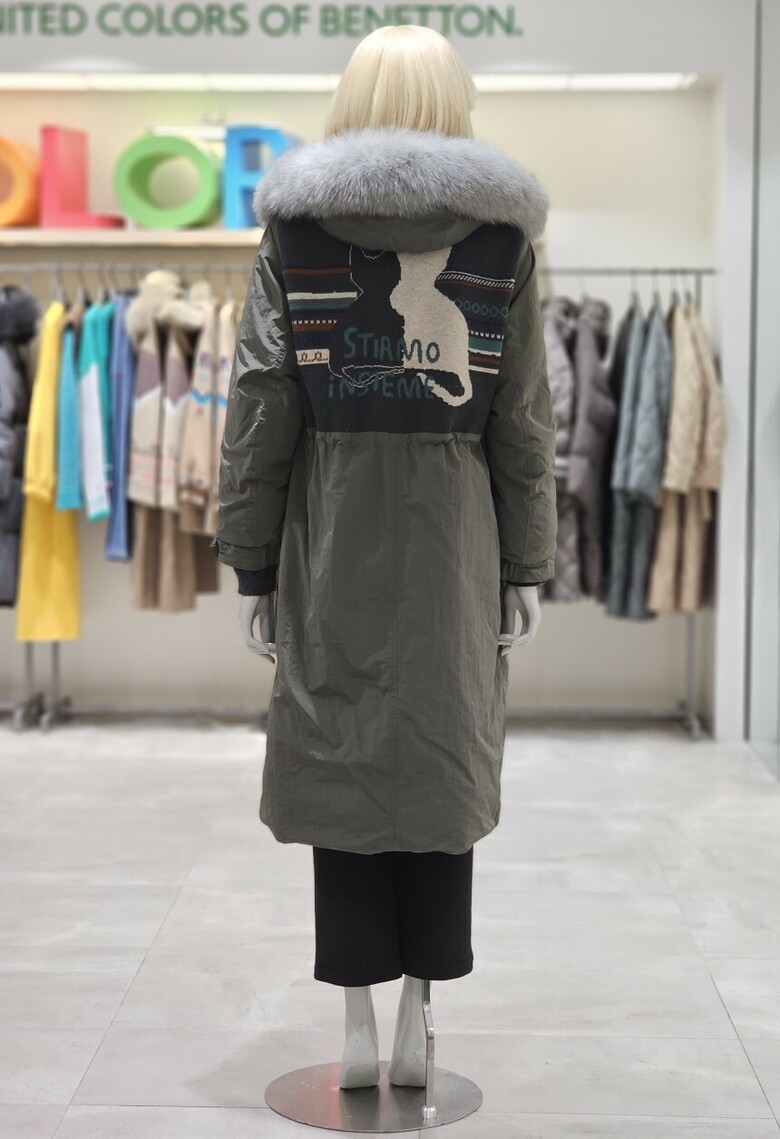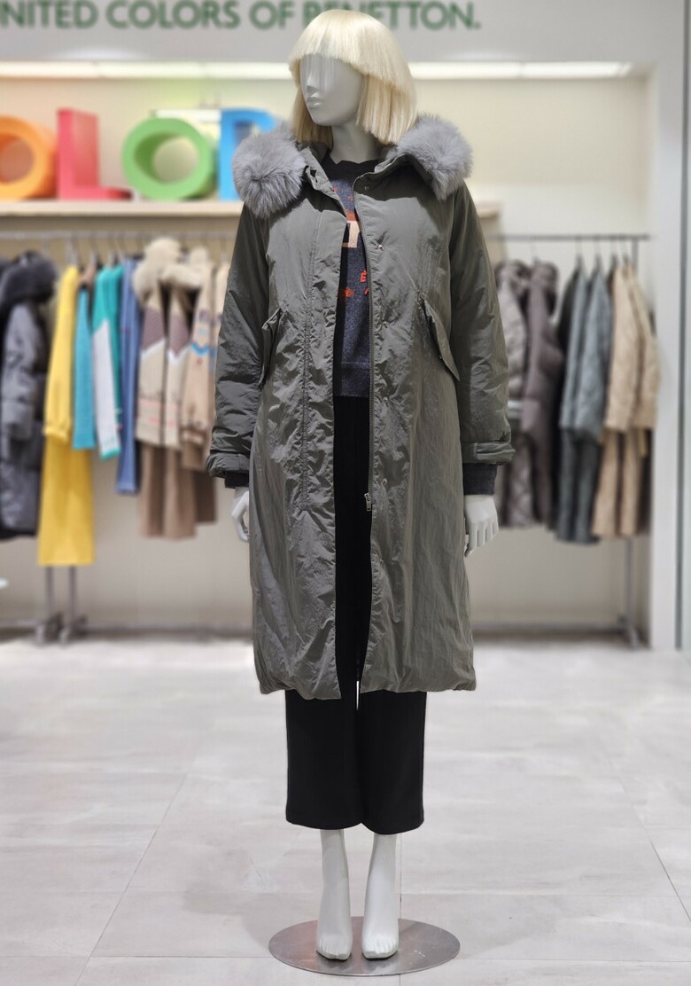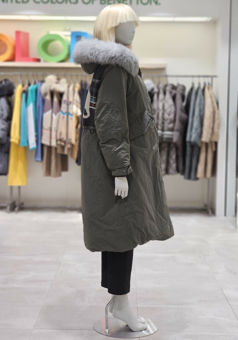 베네통 브론즈 폭스 퍼 구스 롱 패딩 BAPDA6561