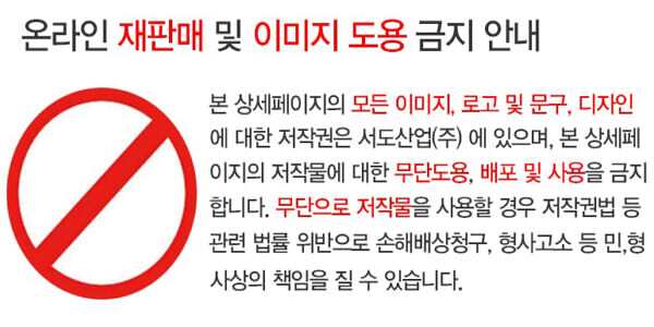 상품불량에 의한 반품, A/S, 품질보증 및 피해보상 등에 관한 사항은 소비자 분쟁해결기준(공정거래위원회 고시) 구매자가 미성년자인 경우에는 상품 구입시 법정대리인이 동의하지 아니하면 미성년자 본인 또는 법정대리인이 구매취소 할 수 있습니다. |