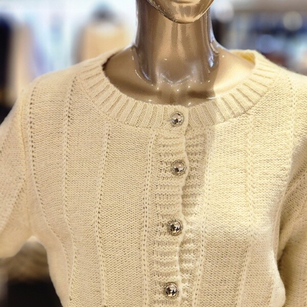 BFW5SNKG9390_실버버튼 라운드넥 숏가디건