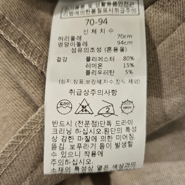 제품소재 : 겉감-폴리에스터80%, 레이온15%, 폴리우레탄5%