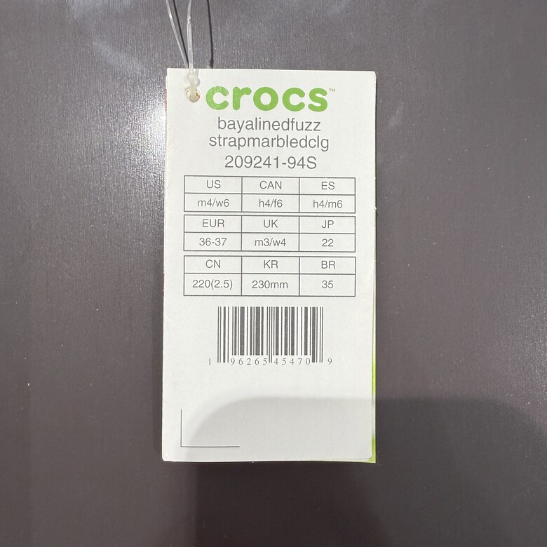 크록스 바야 라인드 퍼즈 스트랩 마블 클로그 209241-94S 화이트