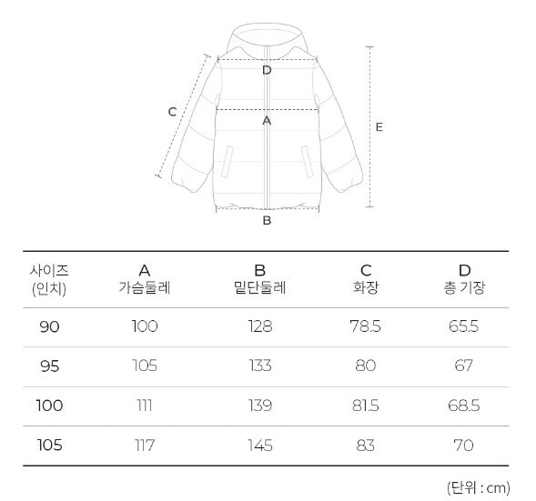 · 충전재 2(모자 아대,지퍼 덮게,소매단) : 폴리에스터 100%