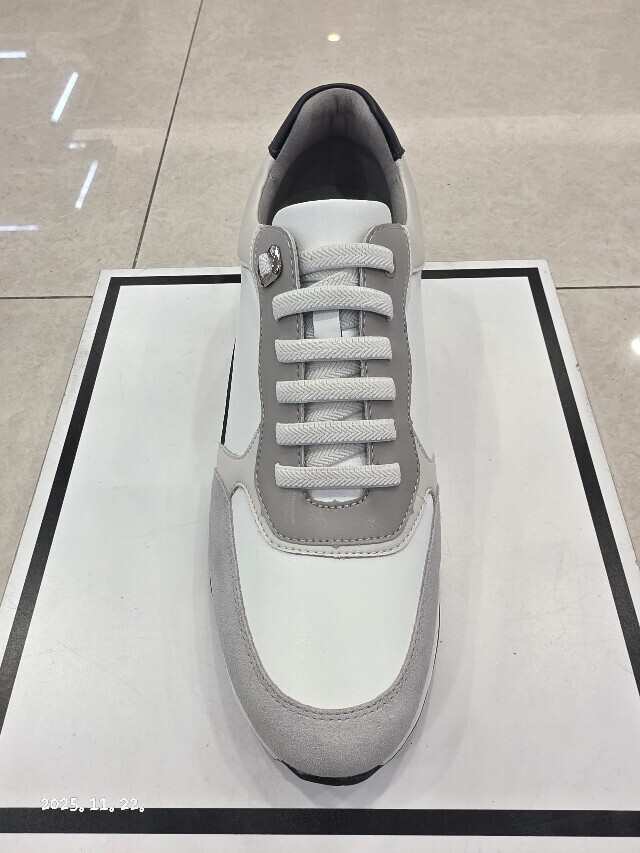 굽높이 약5cm의 높이에 천연소가죽소재를 사용하여 제작된 남성 키높이 스니커즈입니다