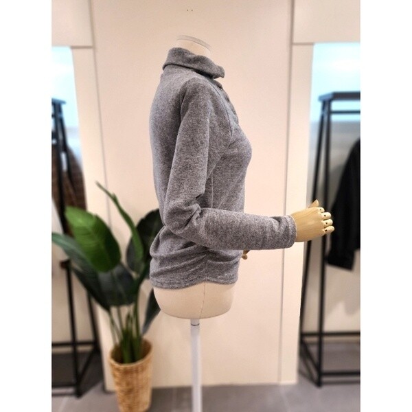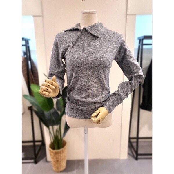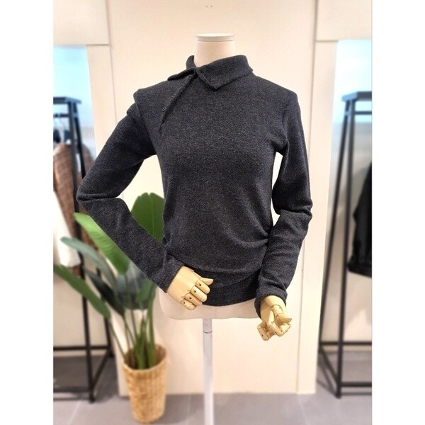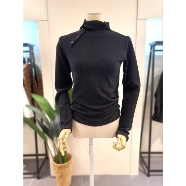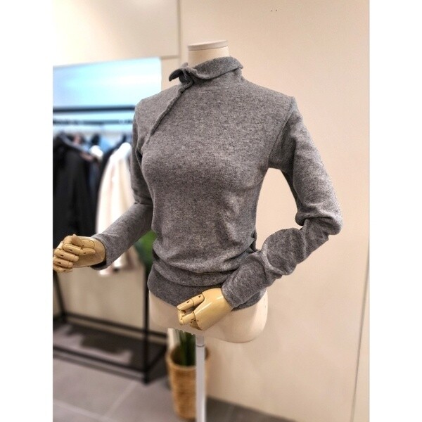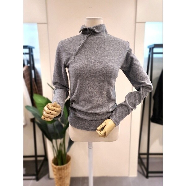 KKTSPB18GR_셔링 버튼 폴라티셔츠 그레이