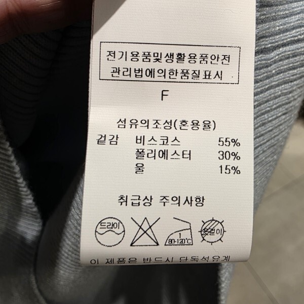 제품소재 : 비스코스 55% 폴리에스터 30% 울 15%