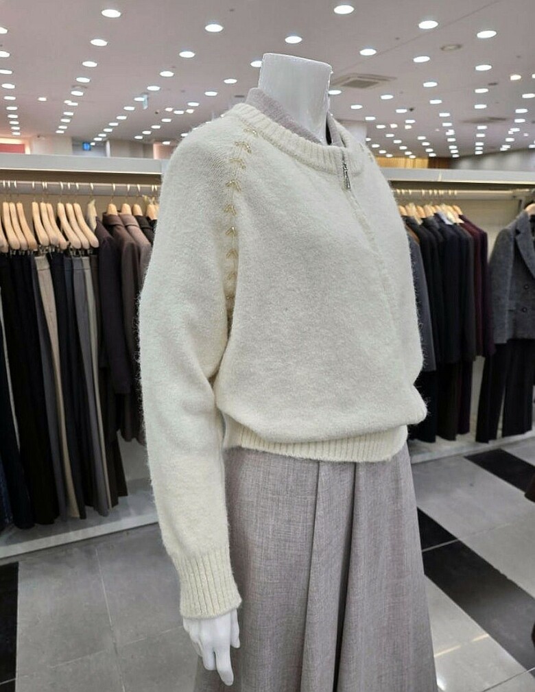 베이직한 디자인에 숄더 비딩 디테일로 포인트를 주며