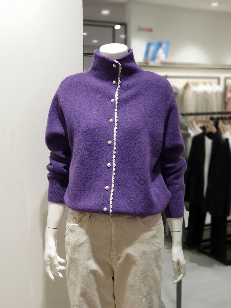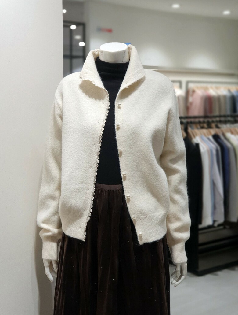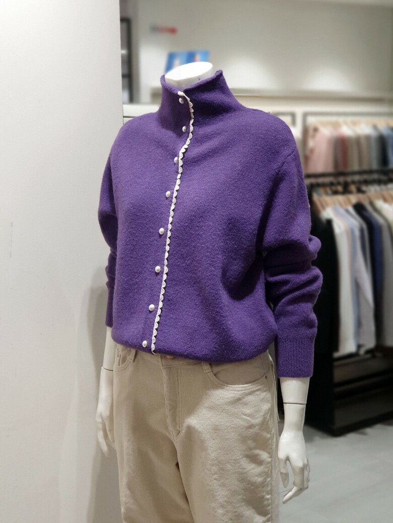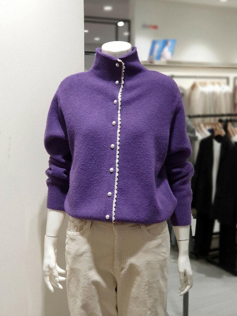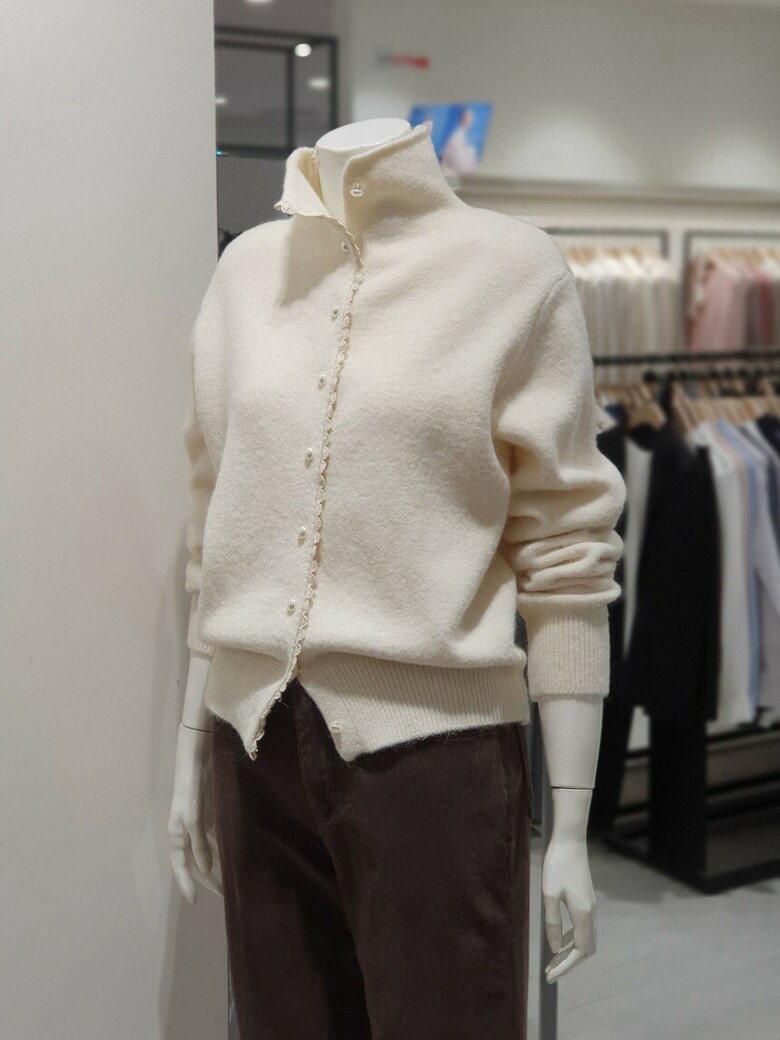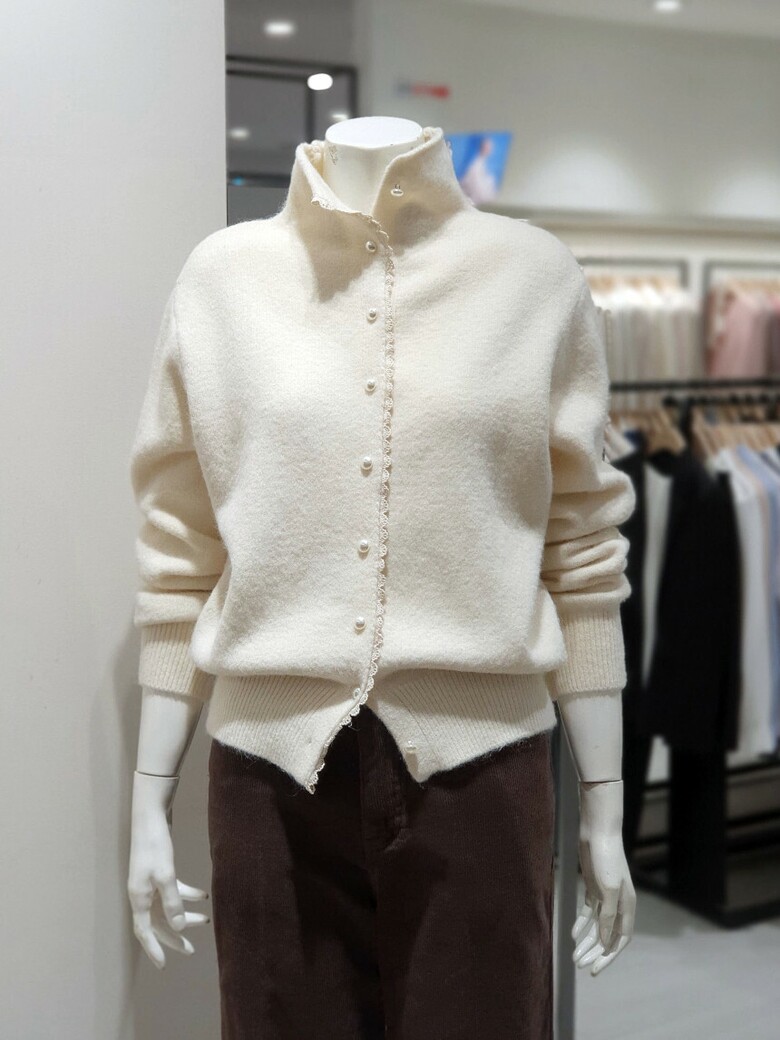 레이스 진주버튼 하이넥 카디건 KKCDPL0400