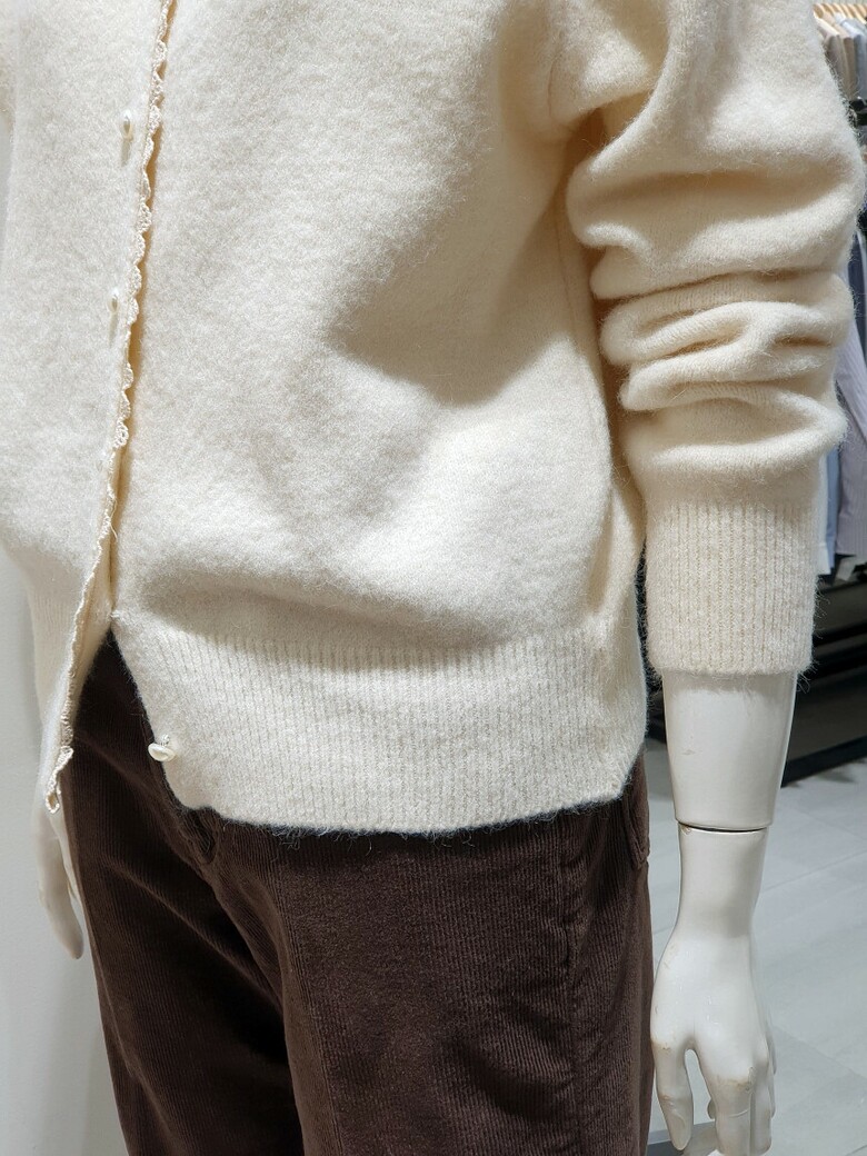 포인트를 주는 페미닌한 무드의 니트 카디건입니다.