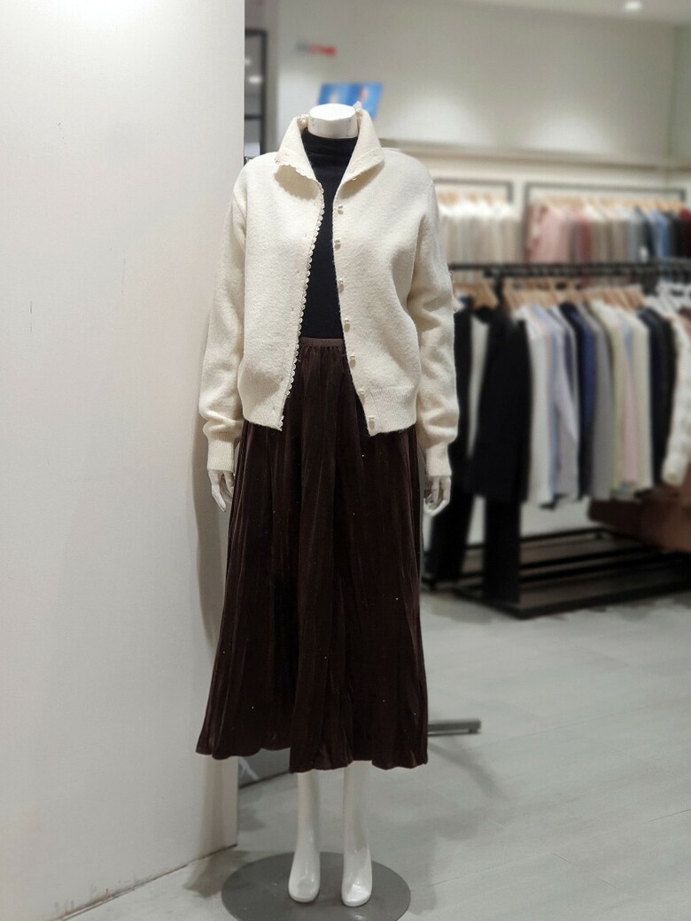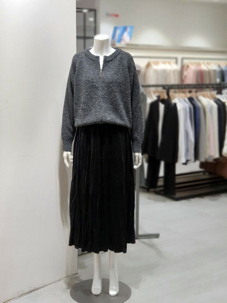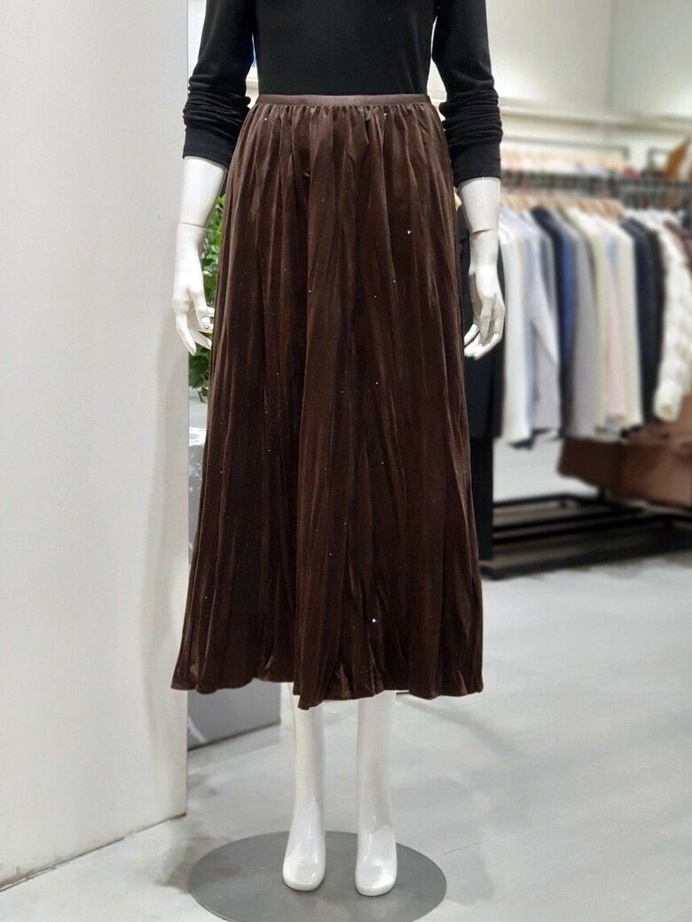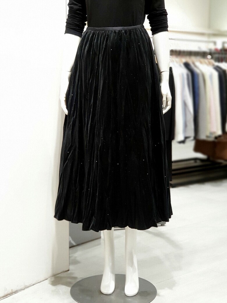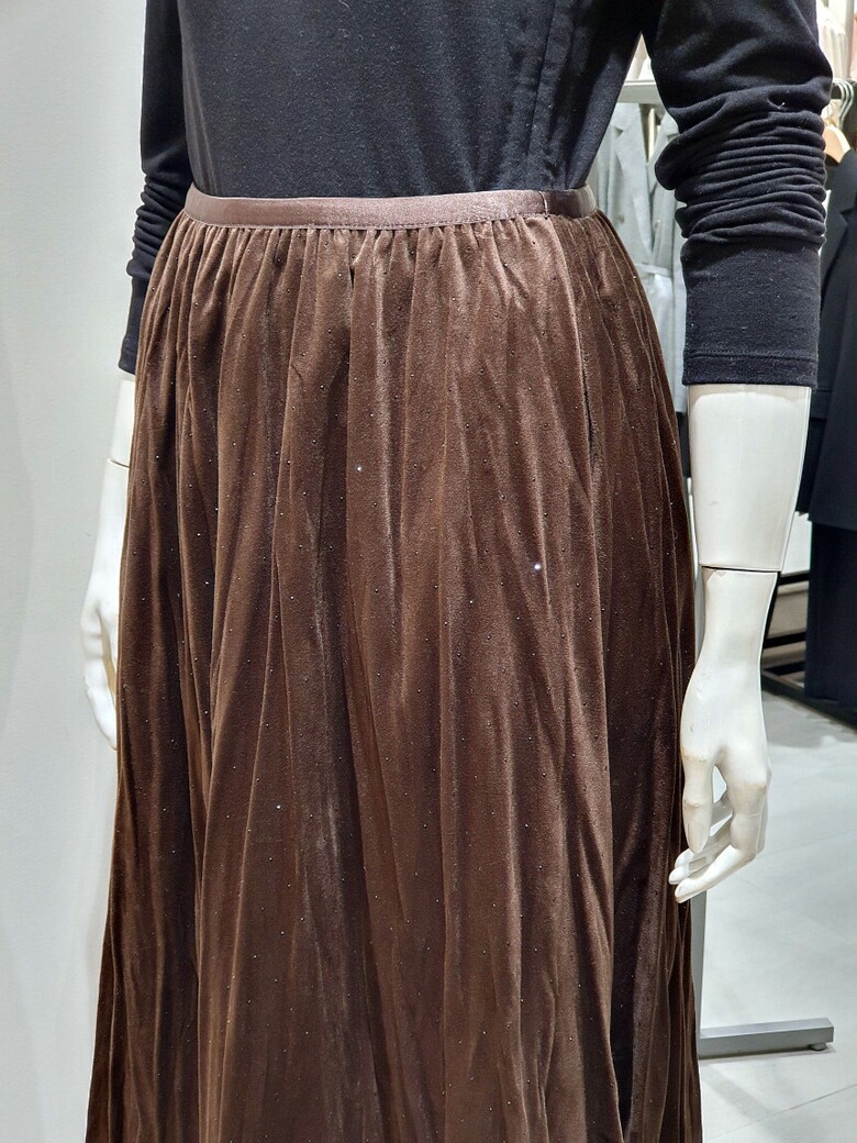 큐빅 장식으로 고급스러움을 더한 벨벳 스커트입니다.