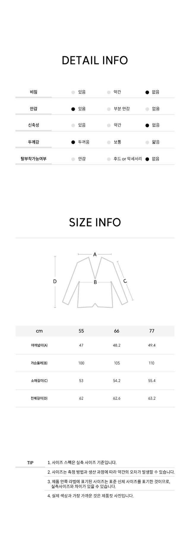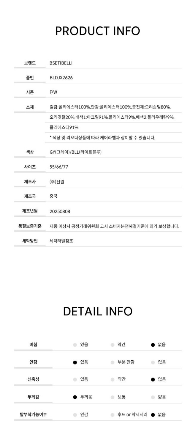 • 처음 배송된 상품상태와 다를 경우(세탁/착용 후 외출하신 경우) 반품이 불가합니다.