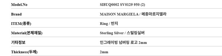마르지엘라 반지 SI8UQ0002 SV0129 950 뉴메리컬 인그레이빙 넘버링 로고 2mm 실버반지 당일발송