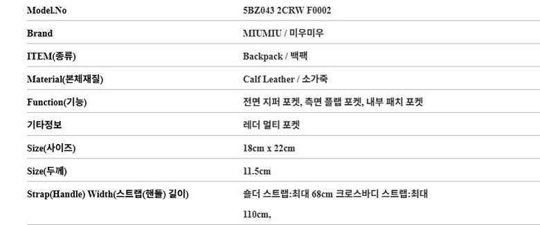 | 5. 제조사 | 미우미우/(주)언커먼레이블-병행수입 |