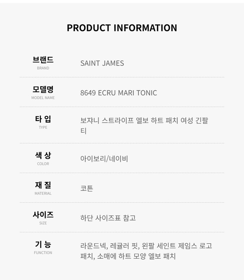 세인트제임스 긴팔 8649 ECRU MARI TONIC 보쟈니 스트라이프 엘보 하트 패치 여성긴팔티 당일발송