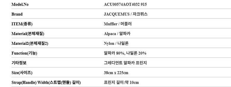 자크뮈스 머플러 ACU00574AOT4032 915 레샤페 모아종 그레디언트 알파카 프린지 머플러 당일발송