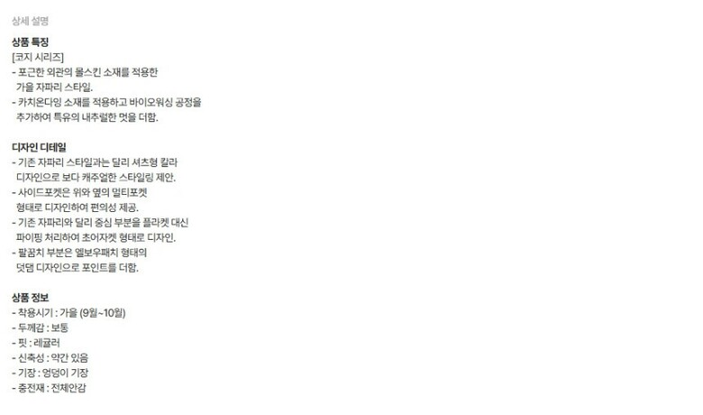 • 처음 배송된 상품상태와 다를 경우(세탁/착용 후 외출하신 경우) 반품이 불가합니다.