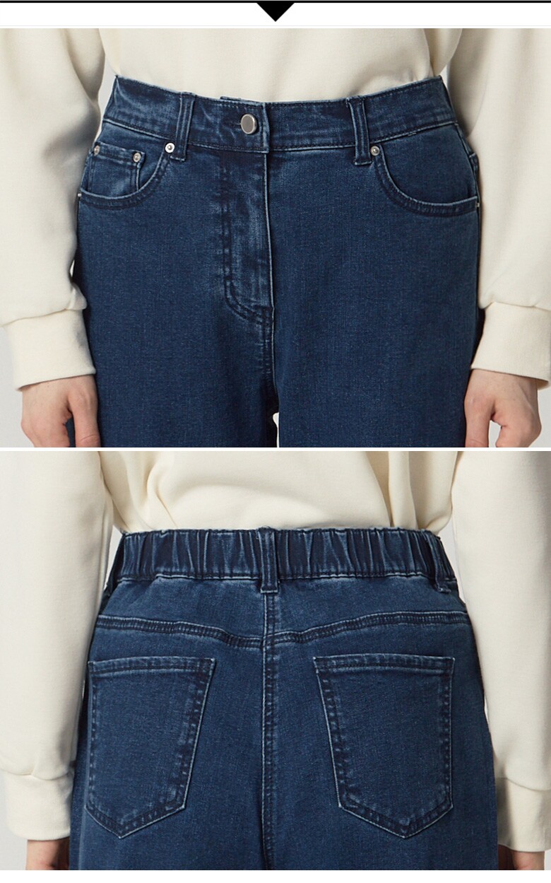 약기모 원단의 하프밴딩 배기 데님팬츠입니다.