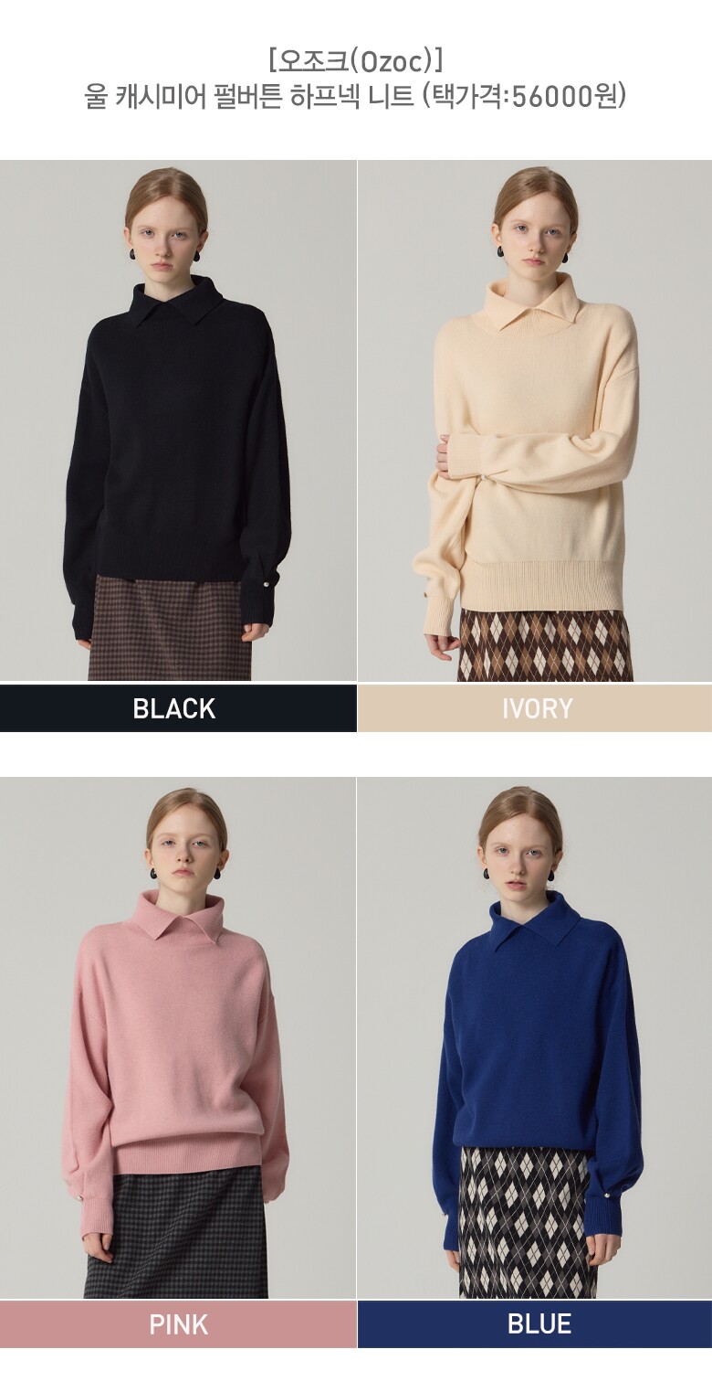 [오조크(OZOC)] 울 캐시미어 펄버튼 하프넥 니트 (택가격: 56000원)