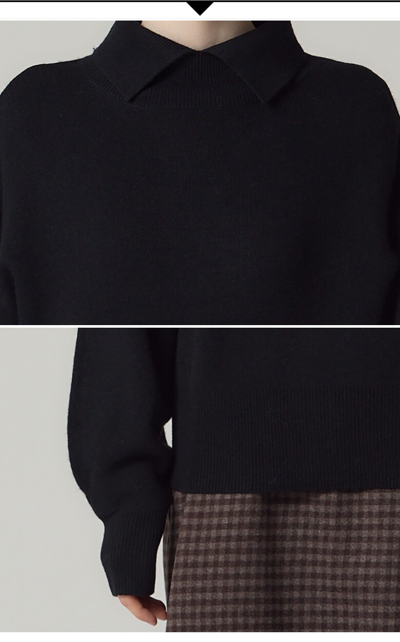 트임이 있어 카라 느낌을 주는 하프넥과 우아한 소매라인이 포인트인 니트입니다.
