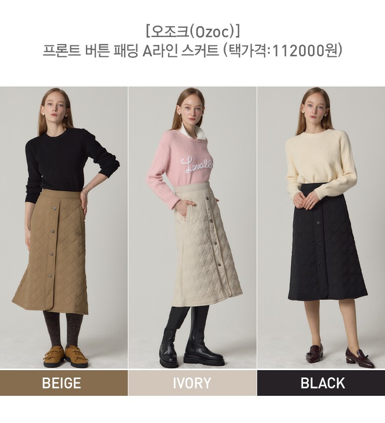 [오조크(OZOC)] 프론트 버튼 패딩 A라인 스커트 (택가격: 112000원)