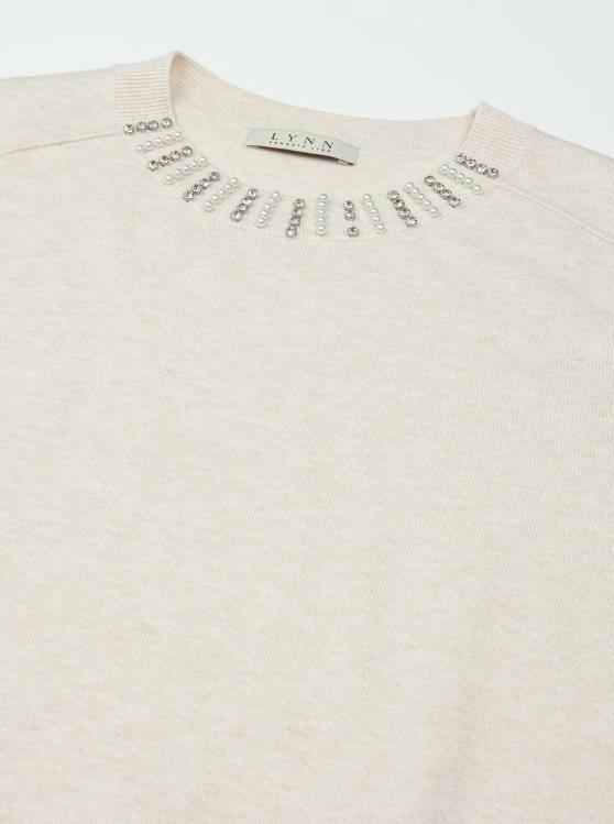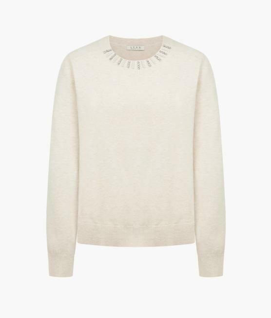 넥라인에 정교한 장식 디테일이 더해져 은은하게 포인트를 주는 니트 풀오버입니다.