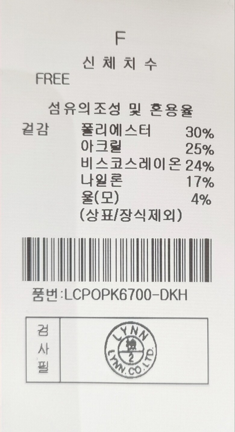 | 6. 세탁방법 및 취급시 주의사항 | 반드시 단독 석유계드라이 크리닝하십시오. |