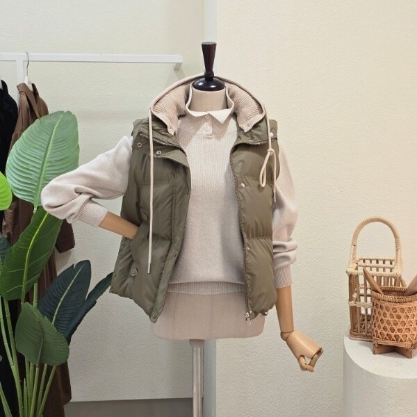 FW5J3VT31891_니트 후드 레더 베스트