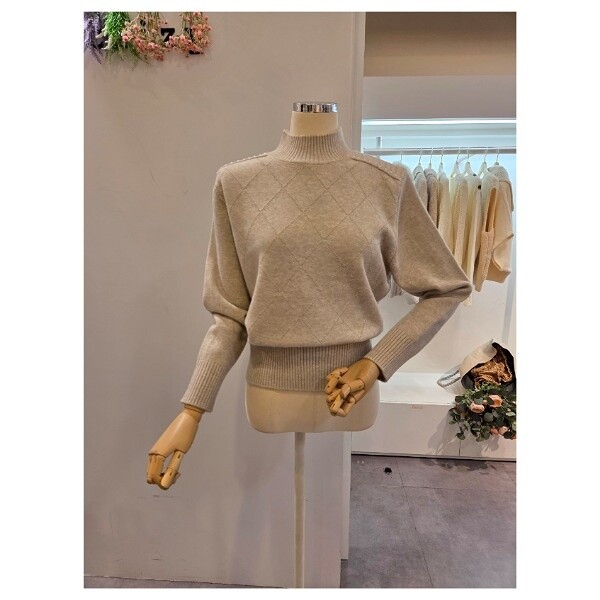 CP9WKP08_어깨 진주 장식 폴라 니트